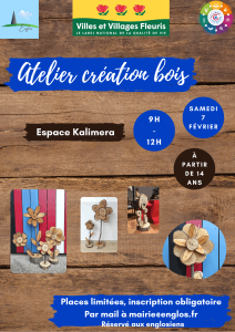 Atelier création bois le samedi 7 février. De 9h à 12h, au sein de l’espace…