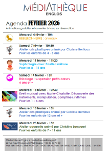 Voici le planning d’animations pour le mois de février 2026. Toutes les animations sont sur inscription,…