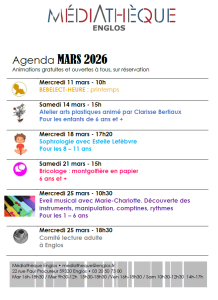 Voici le planning d’animations pour le mois de mars 2026. Toutes les animations sont sur inscription,…